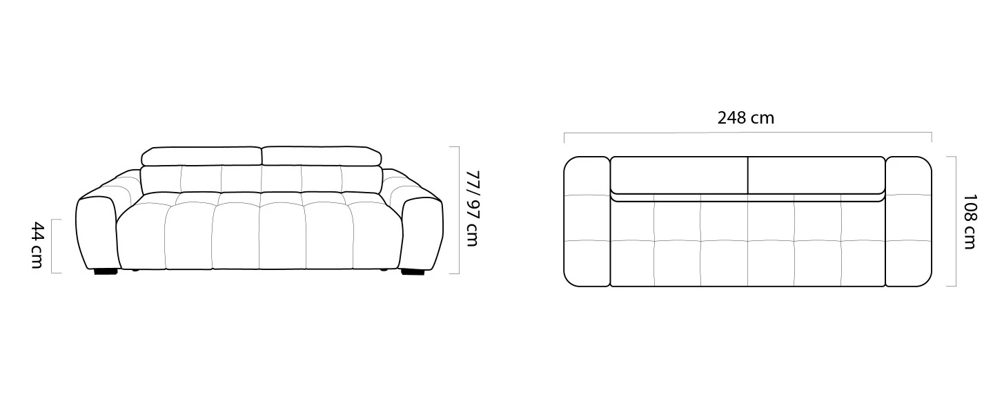 Model BULL wyróżnia się nowoczesnym wyglądem oraz efektownymi głębokimi pikowaniami, które nadają sofie elegancki i luksusowy charakter. Miękkie, szerokie siedziska oraz masywne podłokietniki podkreślają jej komfortowy i designerski styl.