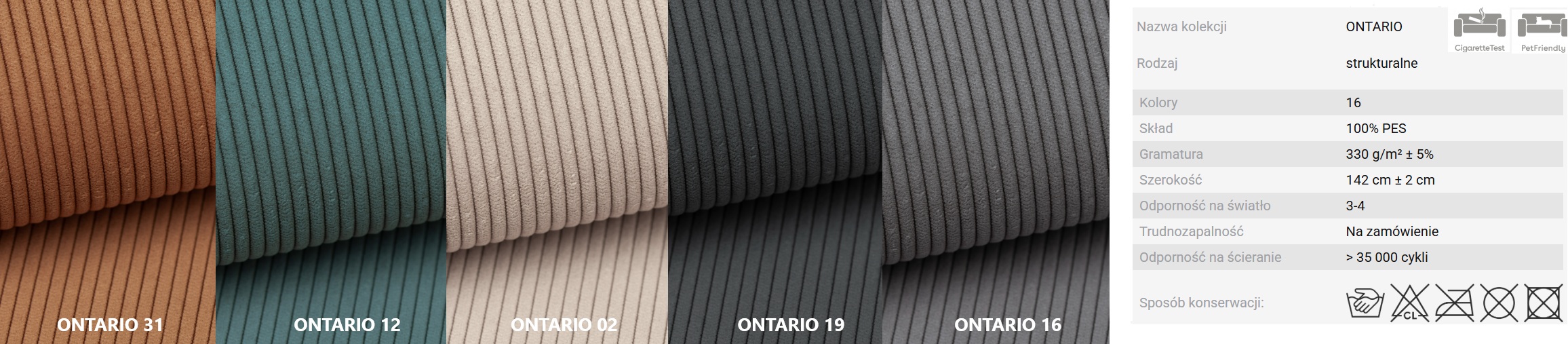 Z odpornością na ścieranie 35 000 cykli, tkanina Ontario jest