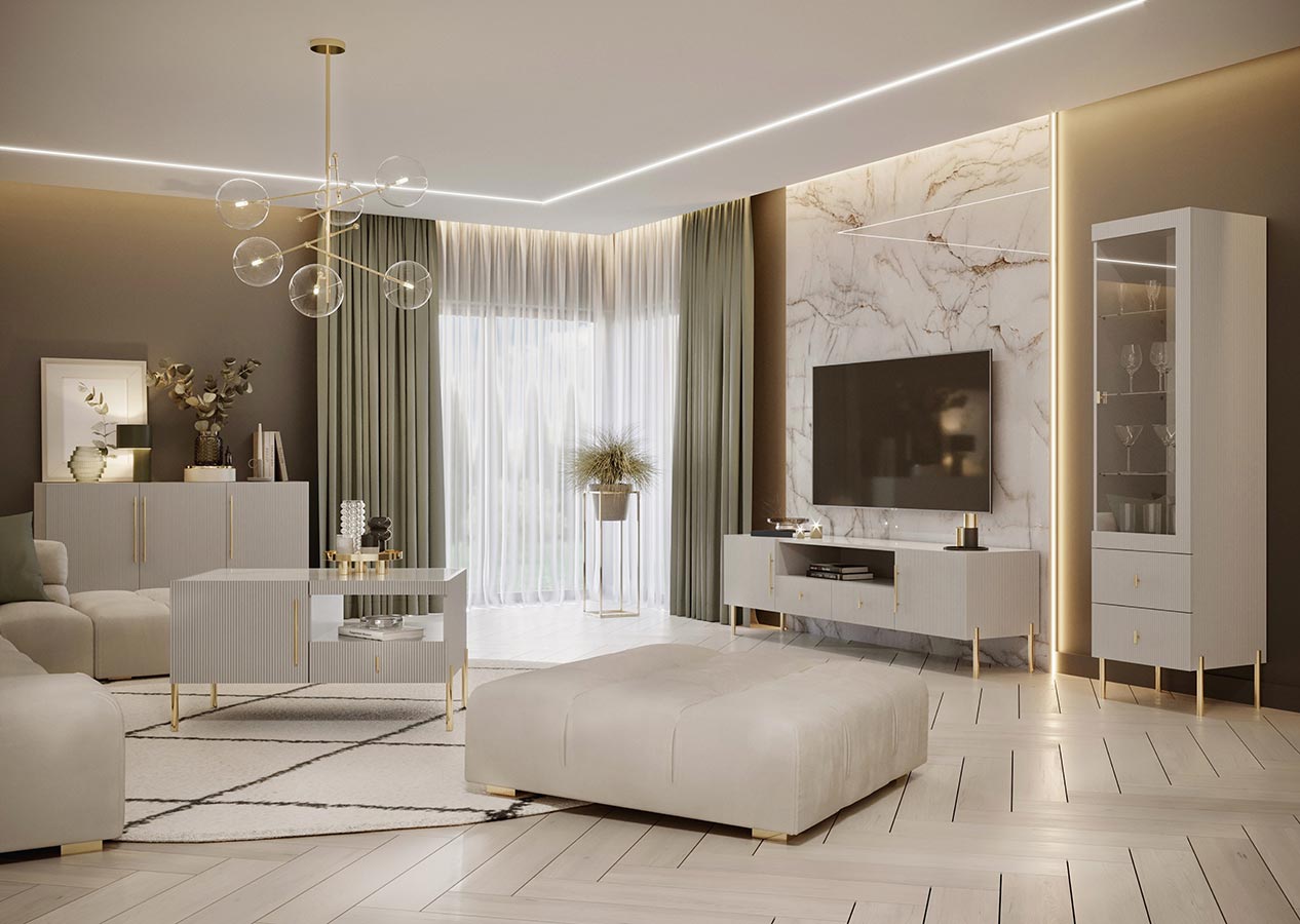 - Wszechstronność: Mebel taki jak komoda do salonu glamour może służyć zarówno do przechowywania, jak i jako elegancka szafka pod telewizor.