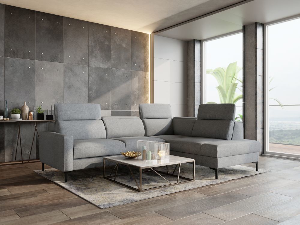 - Narożnik Verona W – wyposażony w mechanizm do codziennego spania, regulowane zagłówki i pojemnik na pościel, łączy wygodę z nowoczesnym stylem.